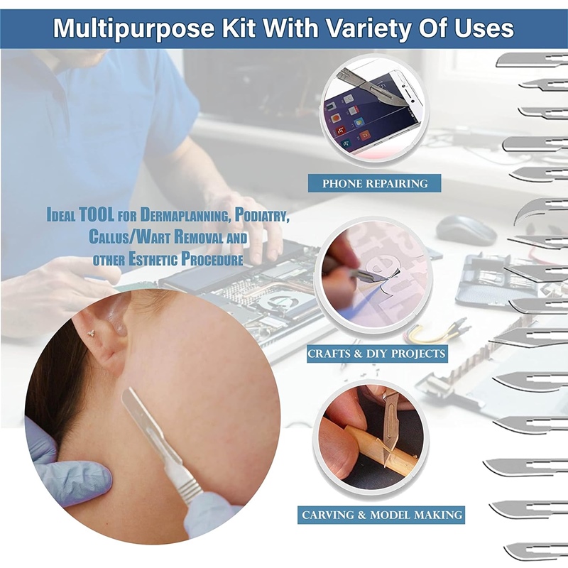 Ipari precíziós vágás: Az érzékeny anyagok pontos és éles vágásához szükséges munkahelyeknél a nem orvosi vállalatok időnként műtéti fogantyúkat használnak.